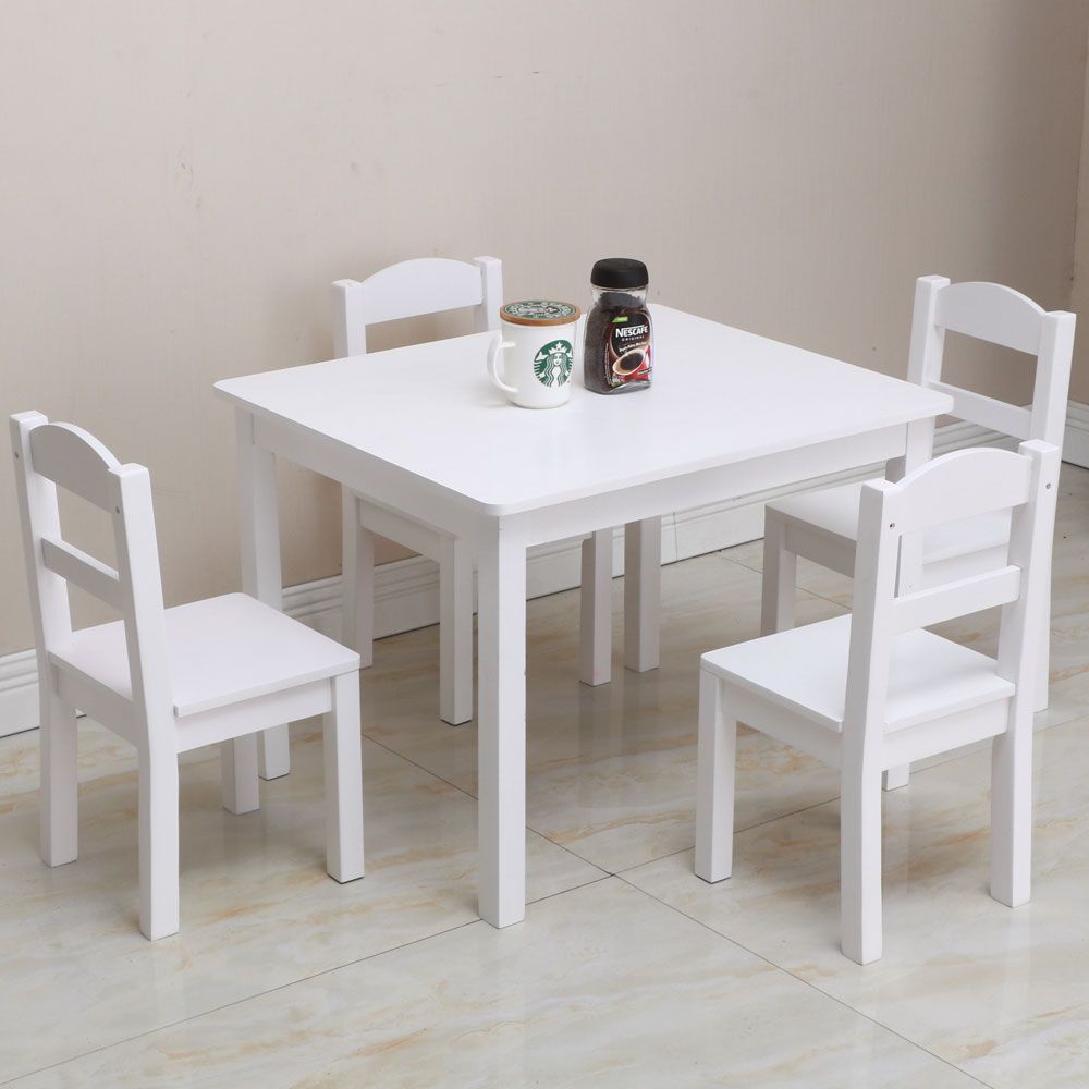 2020 Kids Wood One Diningtable And 4 Chairs Set White Furniture