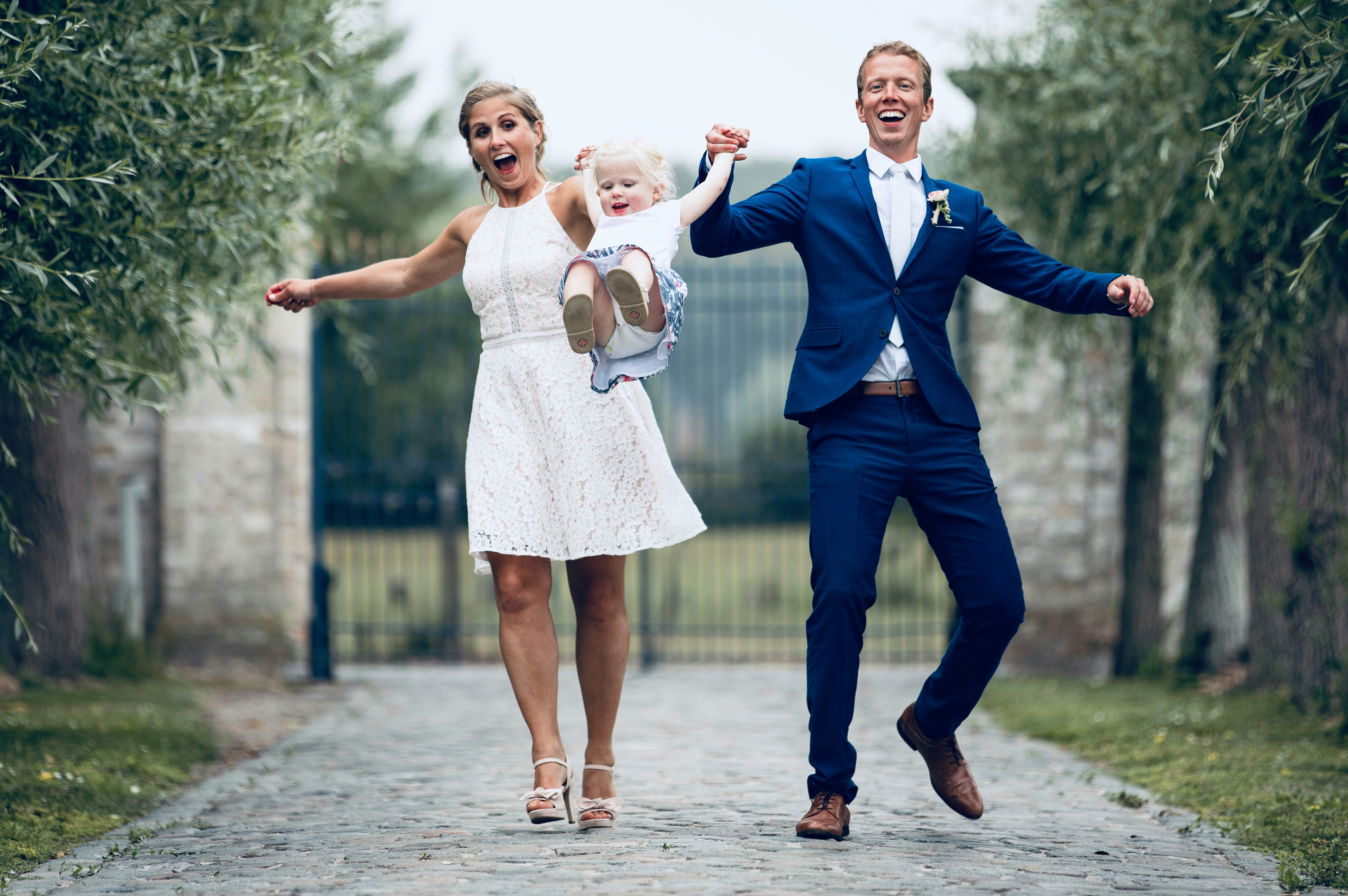 Woman And Man Swinging A Toddler By Their Arms During Day Photo